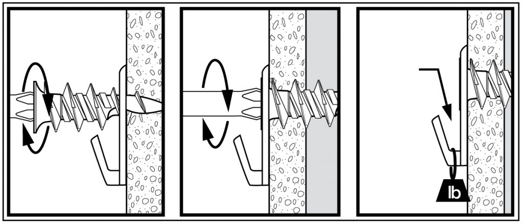1. 후크를 벽면에 대고 스크루 드라이버를 사용해 시계방향으로 돌려 삽입한다.
