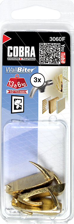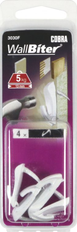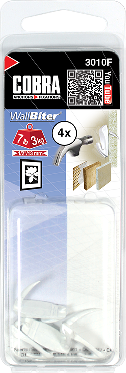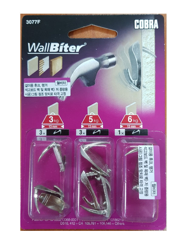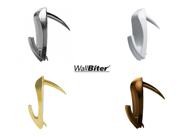 WallBiter 후크는 액자 걸이용으로서 가장 적합한 컨셉의 후크 제품 중 하나입니다. WallBitter 후크의 특수 고안된 2개의 돌기는 액자를 건식벽체에 단단하고 안정되게 고정시켜주며 액자 걸이용 일반 후크와 비교하여 보다 강력한 고정력을 제공해 줍니다. 또한, 필요할 경우 쉽게 제거하고 다시 설치할 수 있습니다.