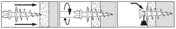 나사의 날개가 넓고 날카로운 나사와 톱니로 대상소재 석고에 나사가 삽입시 석고 손상을 최소화하여 고정력이 높음